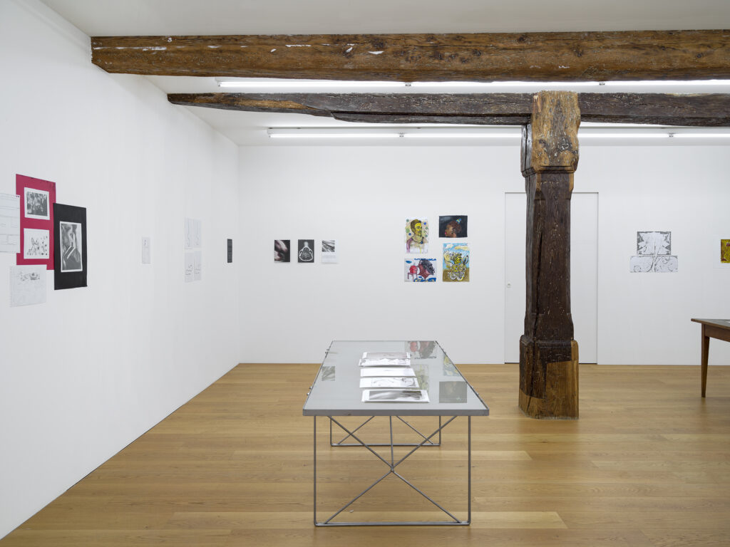 The exhibition Didactic Poetry brings together paper works arranged in small groupings by 15 artists. Their narration takes shape at the intersection of didactics and poetry. In their practices, the artists pursue and exhibit a relational critique of, a precise sensitivity to, and a finely honed notion of this charged dynamic. The works reflect different concepts and understandings of pedagogy, labor, poetry, and gallery.
